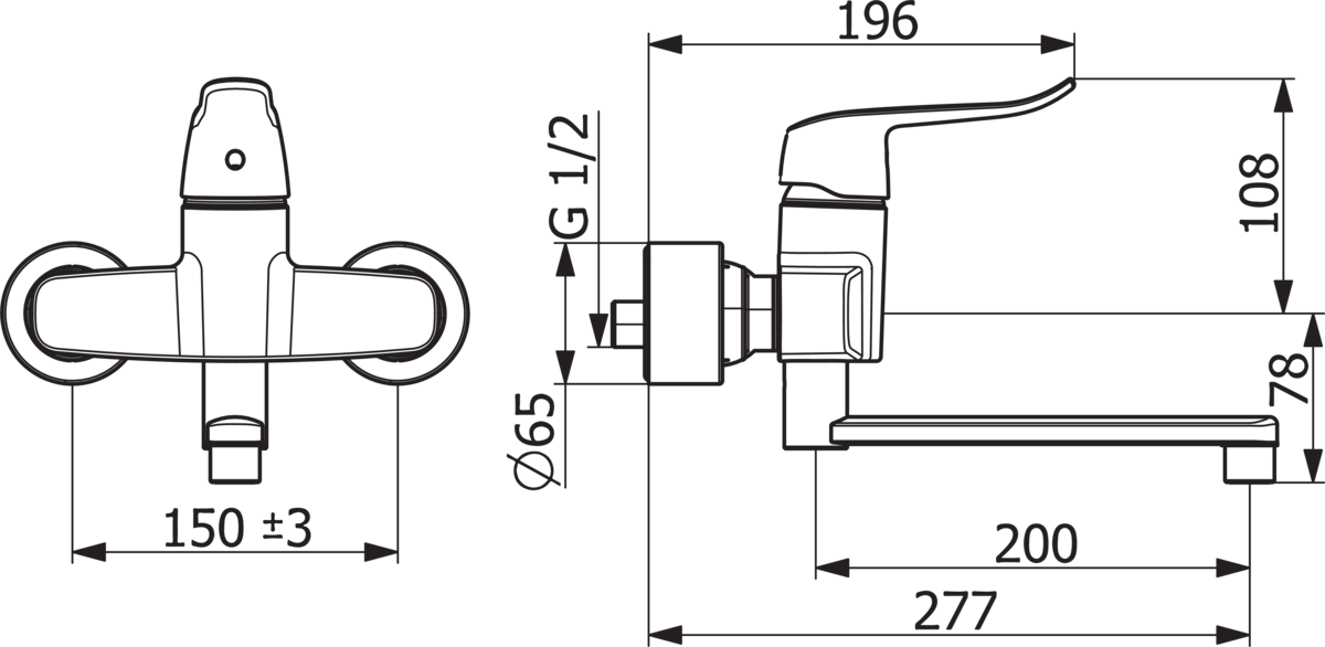 Wandmkr draaibare uitl. spr. 277mm lange hendel HANSACLINICA HANSA