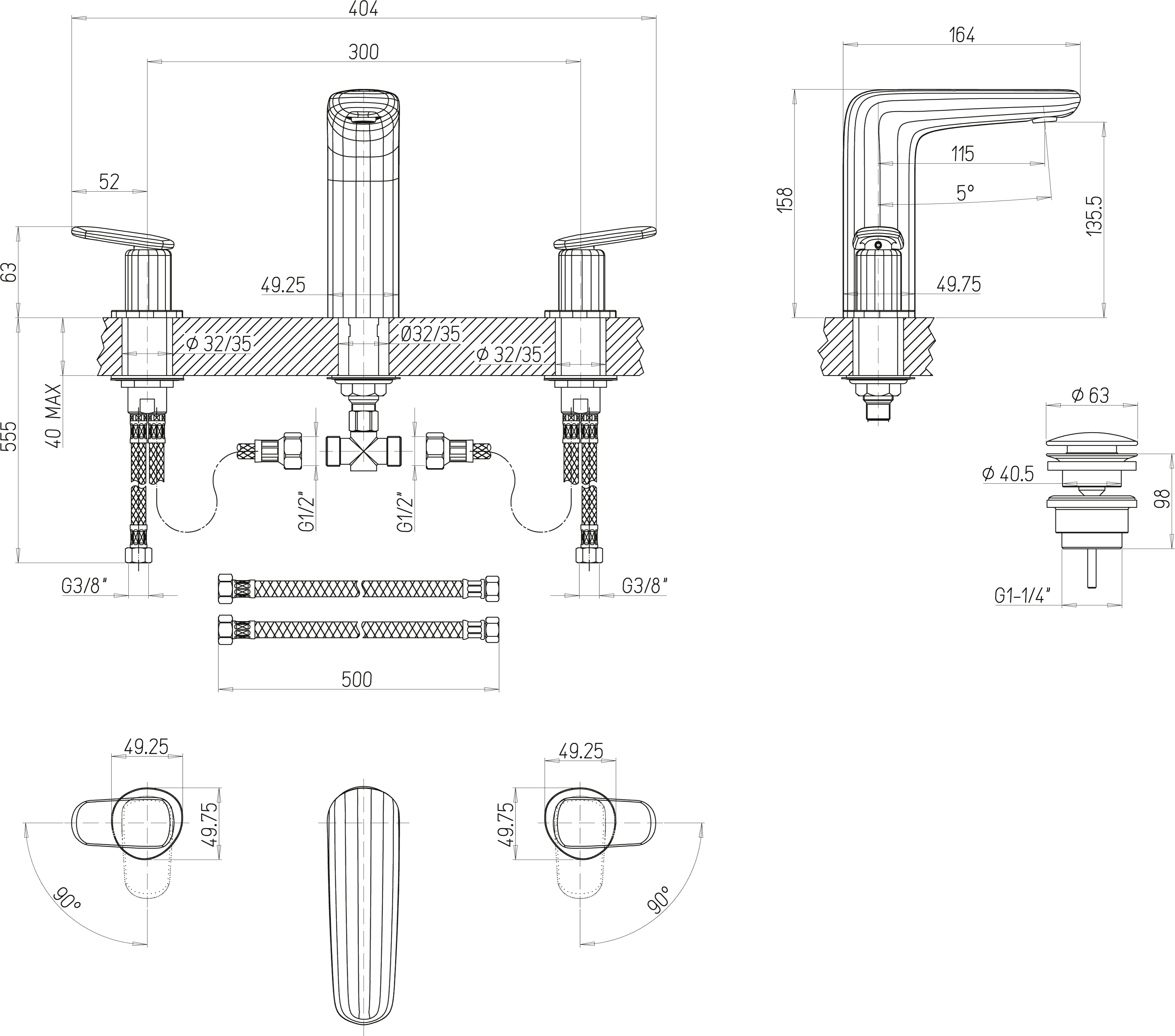 - Opbouwhoogte onderkant kraanmondstuk: 130 mm