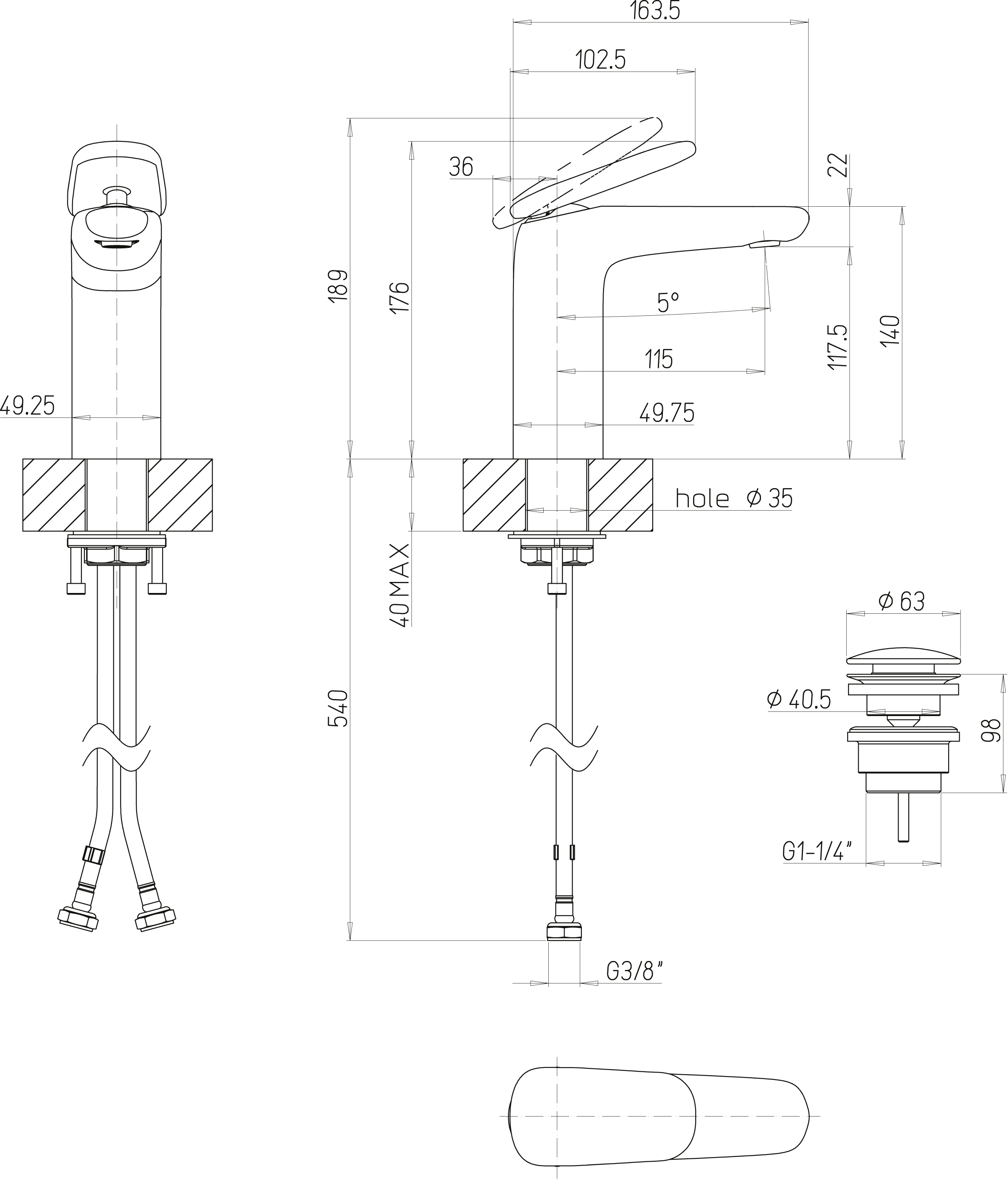 - Opbouwhoogte onderkant kraanmondstuk: 130 mm