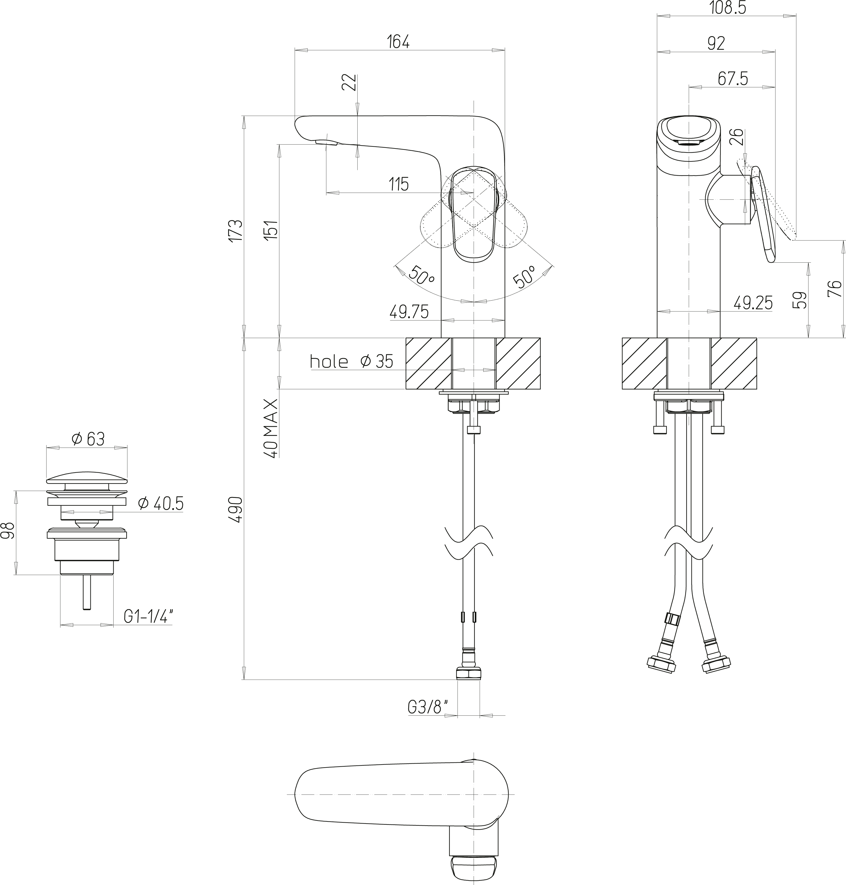 • Opbouwhoogte onderkant kraanmondstuk: 195,5 mm