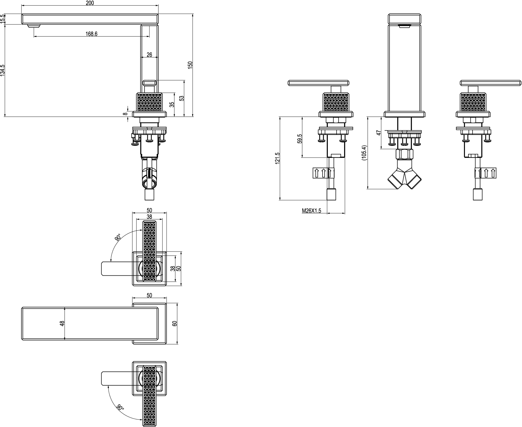 - Opbouwhoogte onderkant kraanmondstuk: 130 mm