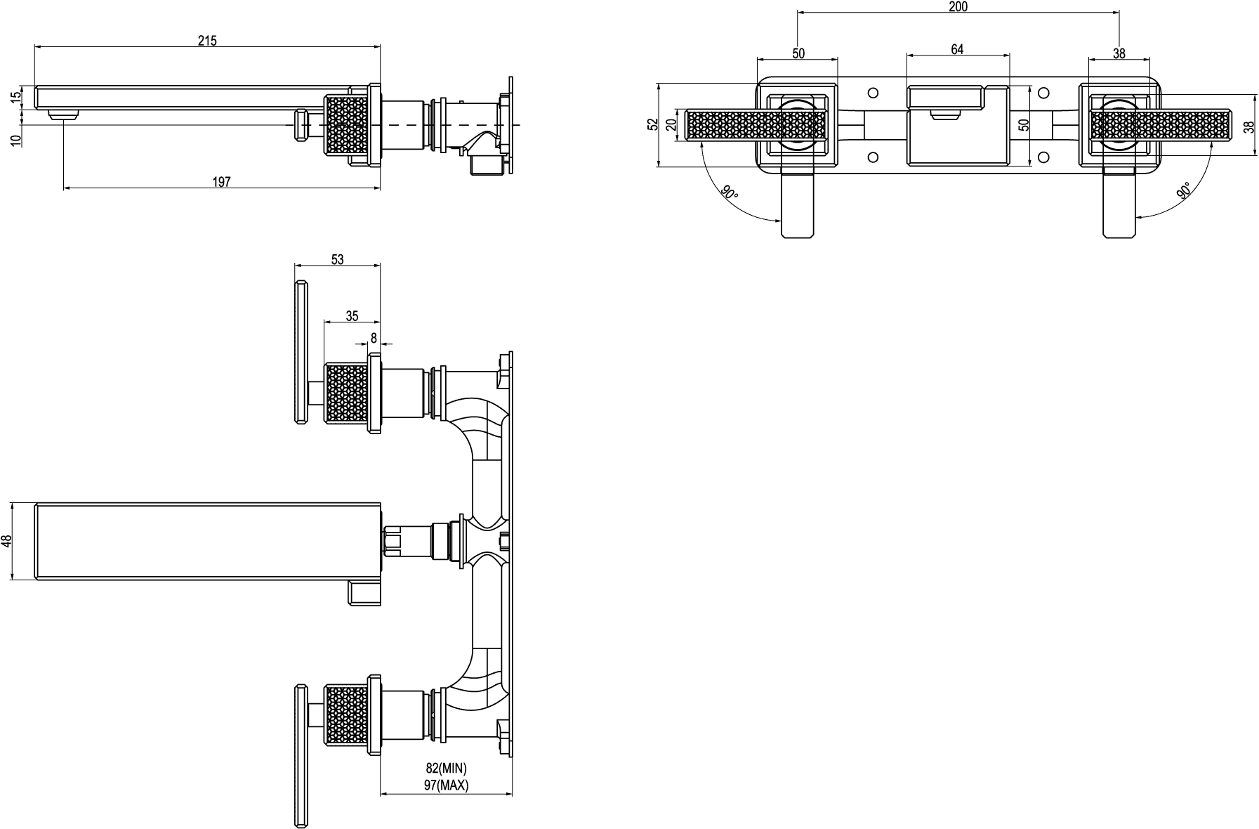 - Opbouwhoogte onderkant kraanmondstuk: 130 mm
