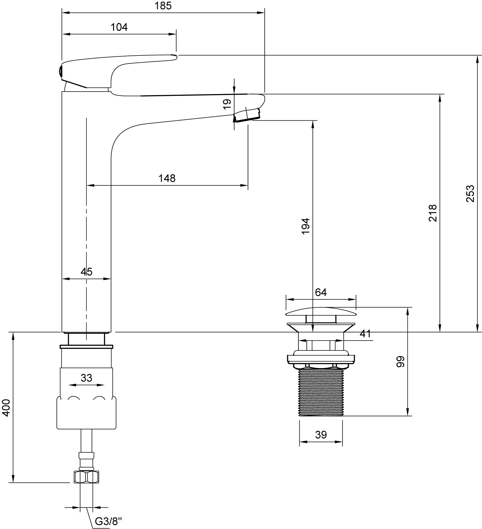 • Opbouwhoogte onderkant kraanmondstuk: 194 mm