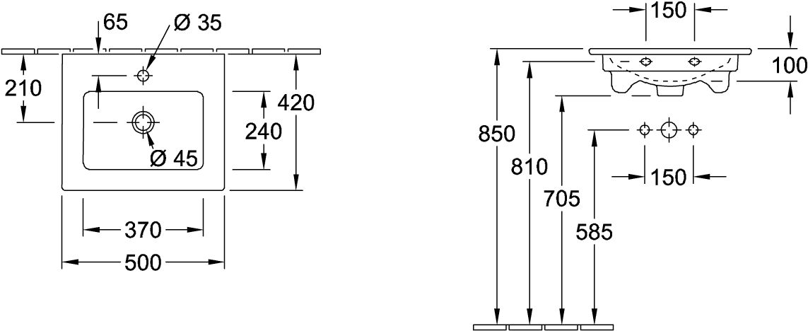 - Aantal kraangaten per wasbak: 1