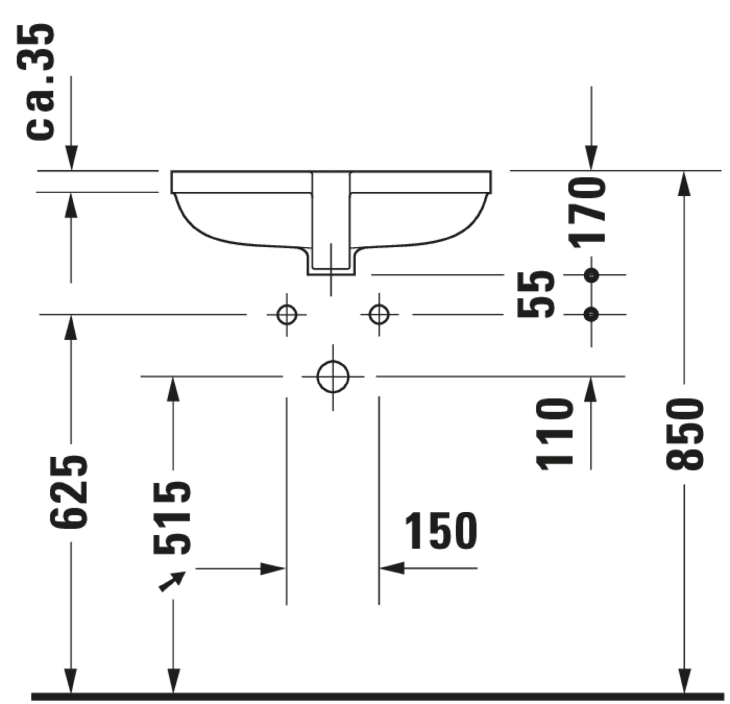 HAPPY D.2 #045748 inbouwwastafel 520mm wit zonder kraangat met overloop Duravit