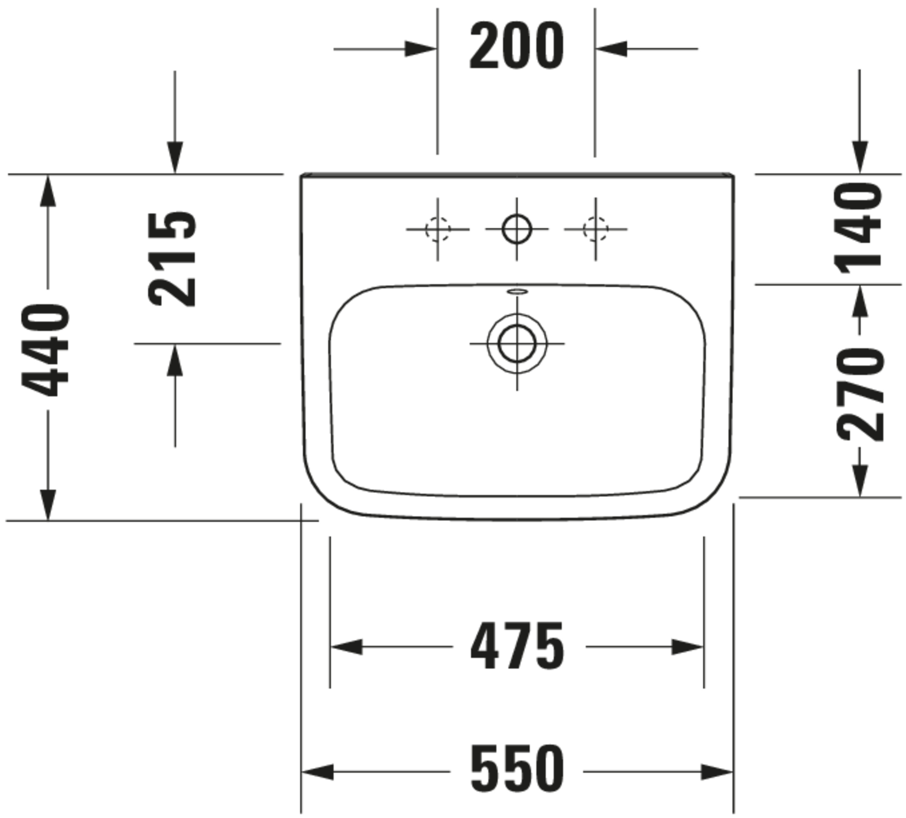 DURASTYLE #231955 wastafel 550mm wit met kraangat met overloop Duravit