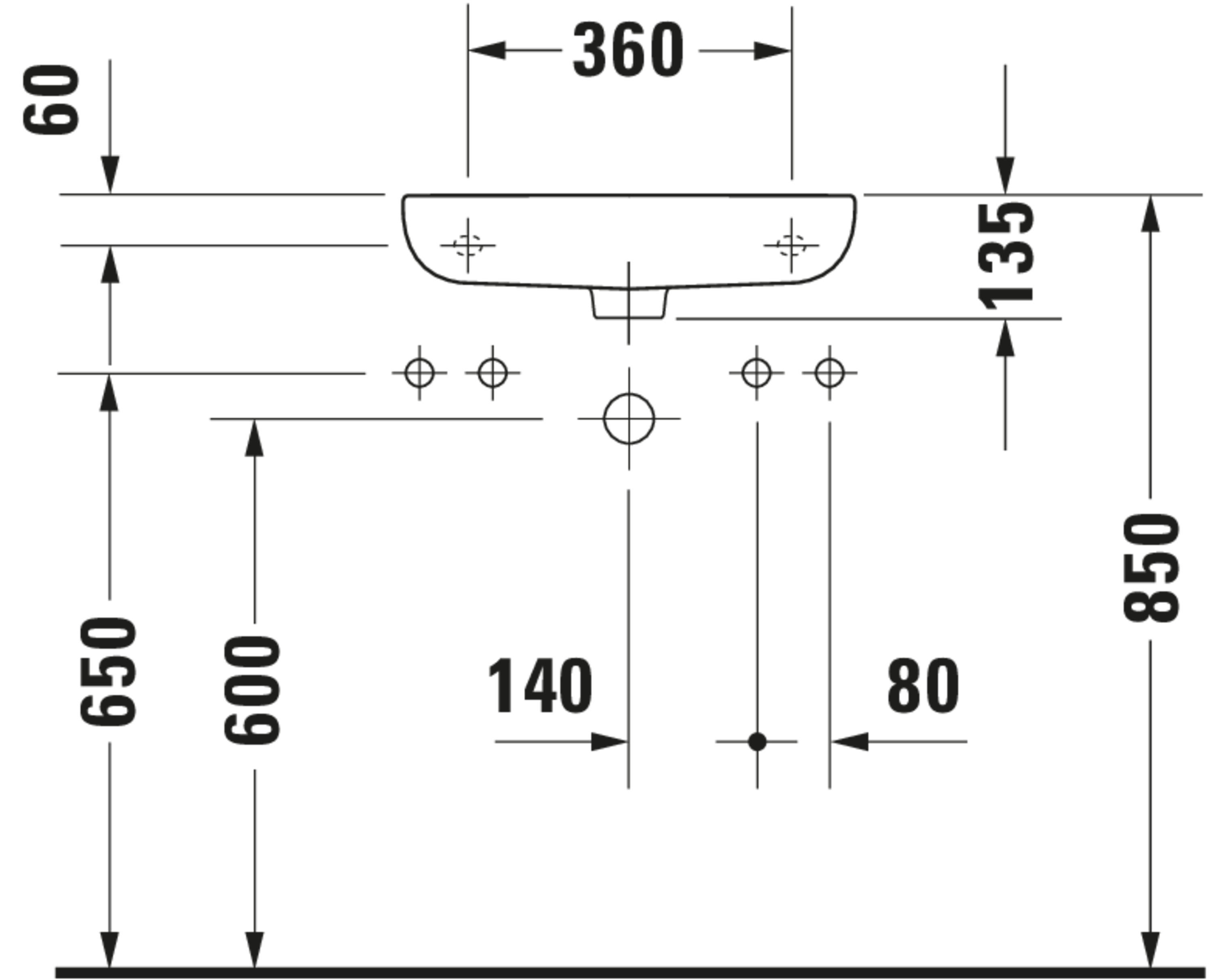 D-CODE #070650 fontein 500mm wit met kraangat met overloop Duravit