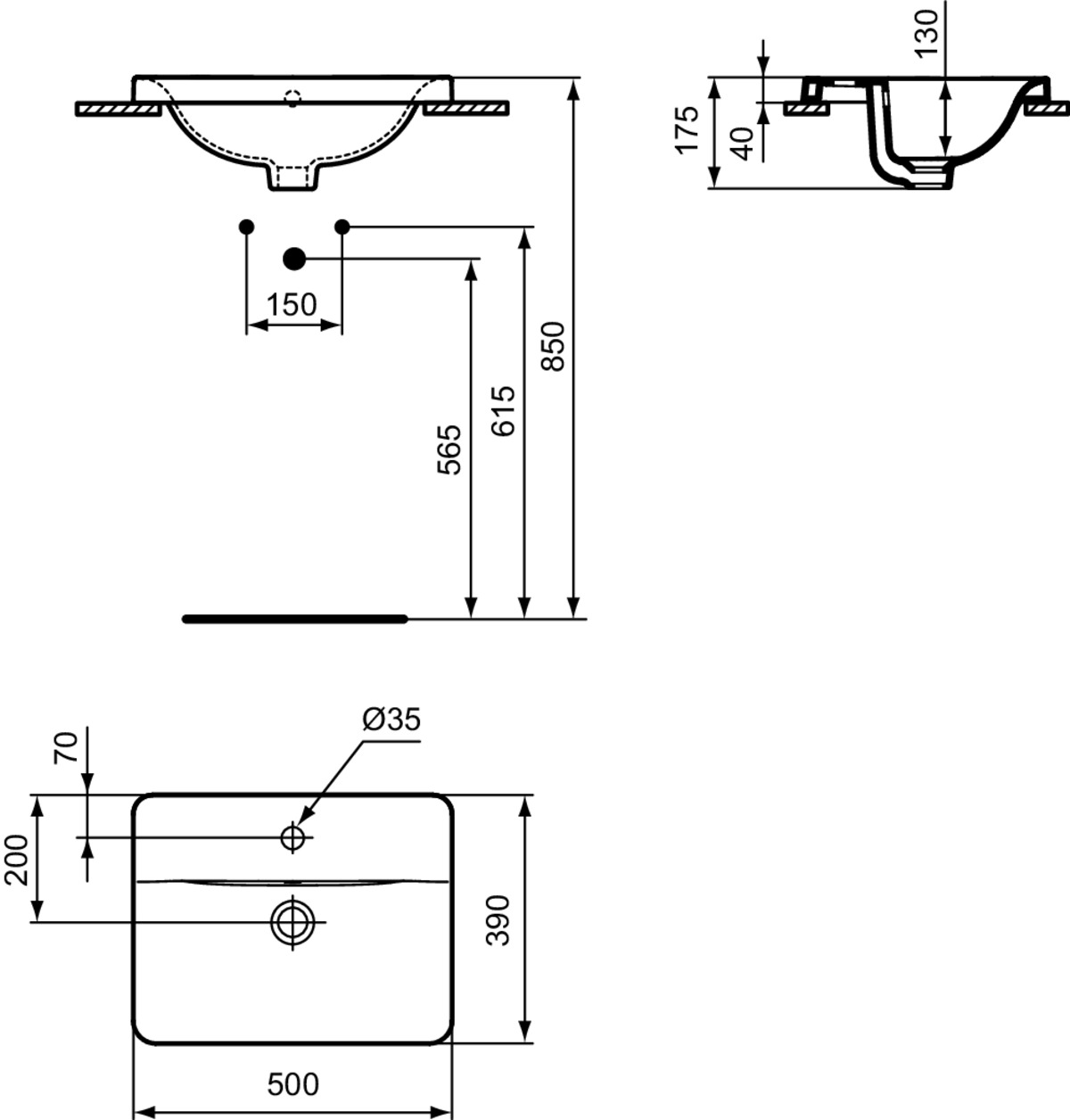 Inbouwwastafel Connect 500x390x175mm rechthoekig wit Ideal Standard