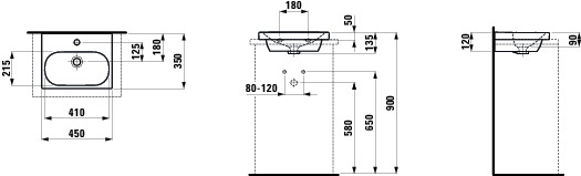 Fontein onderzijde geslepen z kraangat + overloop LUA H8160800001091 Laufen