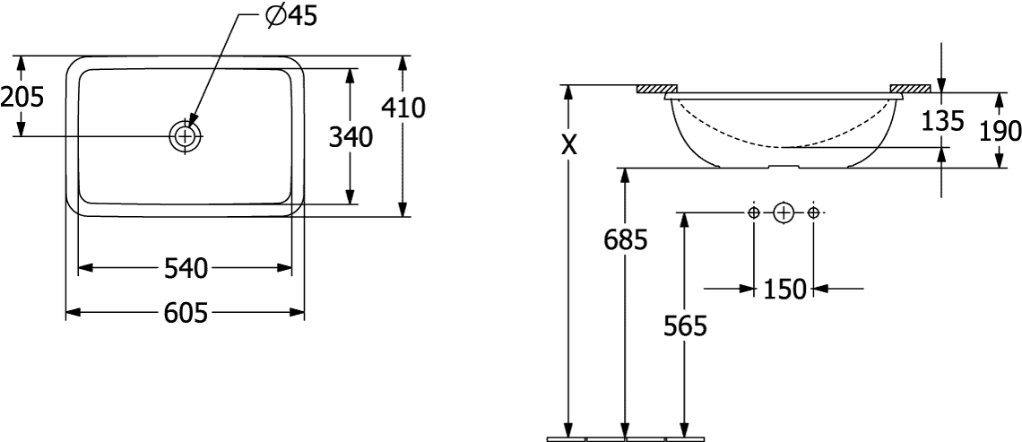 Loop & Friends Onderbouwwastafel 540x340mm 4A570001 Villeroy & Boch