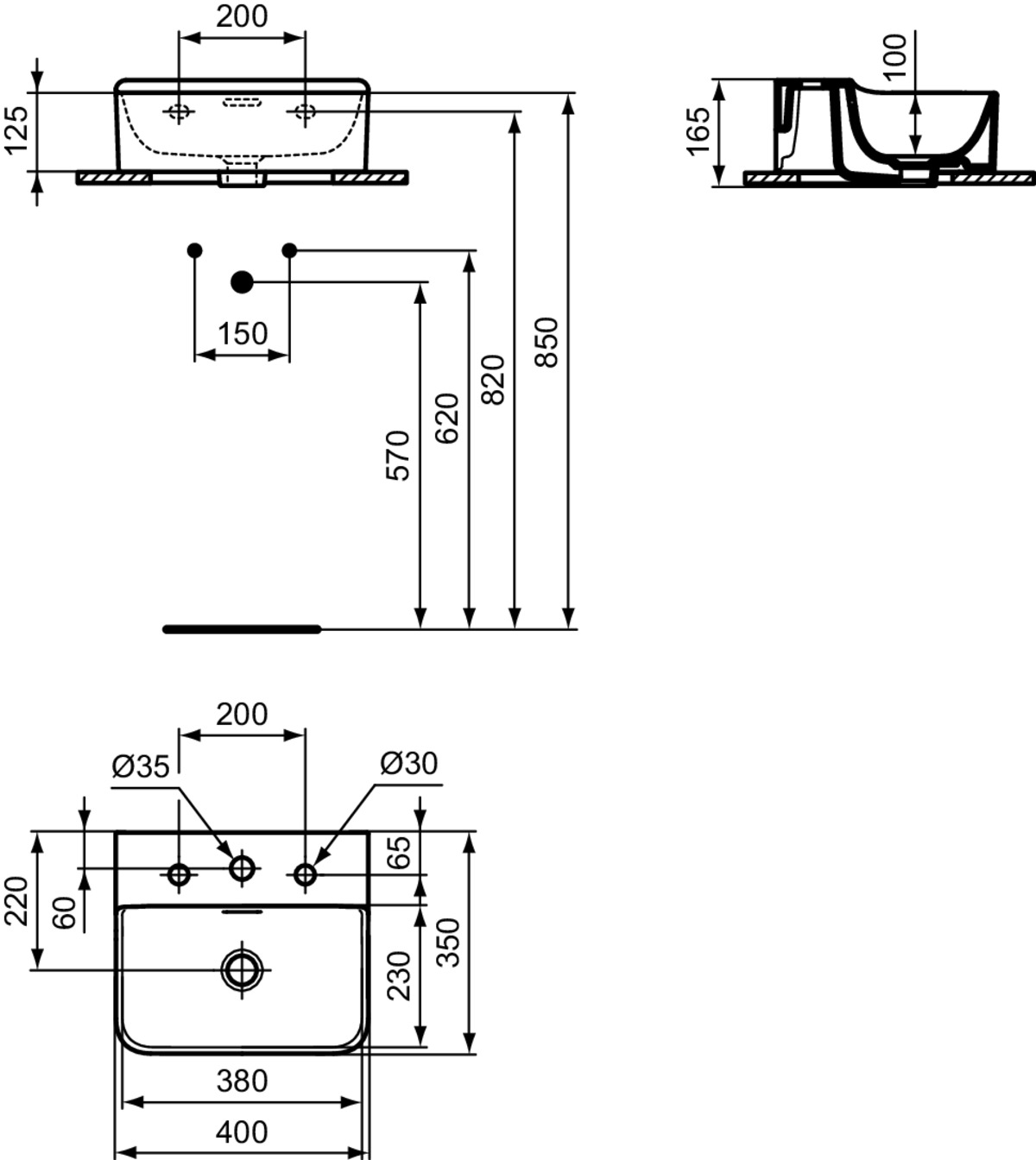 CONCA H/R BSN 40X35 WHITE 3TH OF Ideal Standard