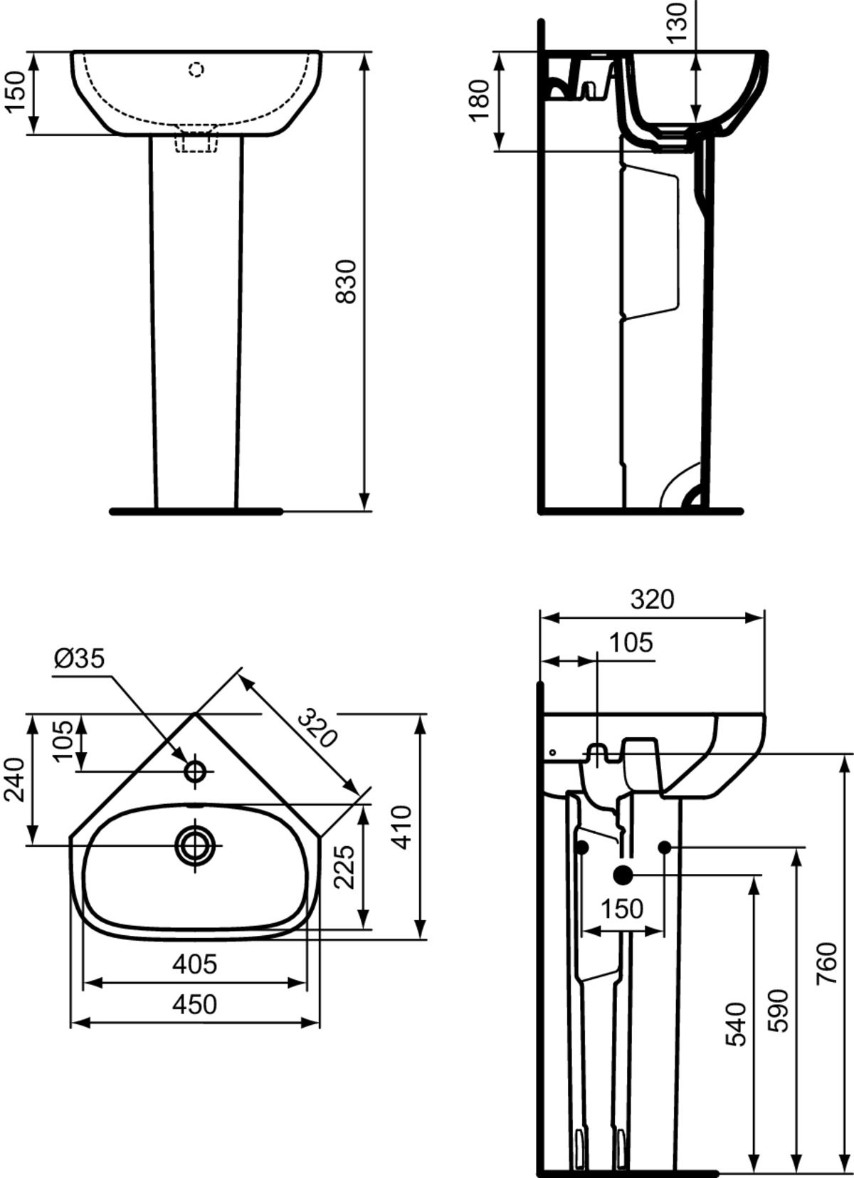Hoekfontein I.LIFE-A 45x41cm met kraangat + overloop wit Ideal Standard