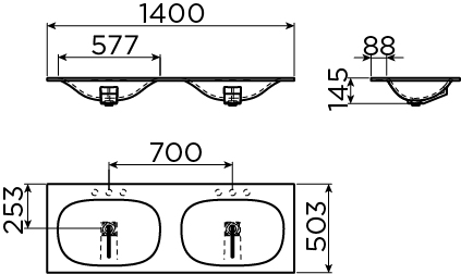 Hammock wastafelblad v.comp.8 wit 2xwaskom m.voorb.kraangat Clou