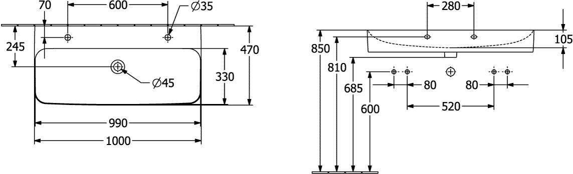 Wastafel Finion 1000x470mm 4168A1R1 Villeroy & Boch