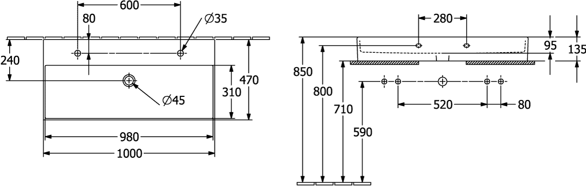 Wastafel Memento 2.0 1000x470mm 4A221L01 Villeroy & Boch
