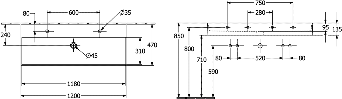 Wastafel Memento 2.0 1200x470mm 4A22C101 Villeroy & Boch