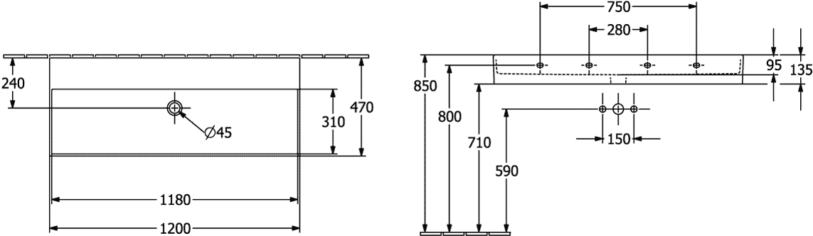 Wastafel Memento 2.0 1200x470mm 4A22C301 Villeroy & Boch