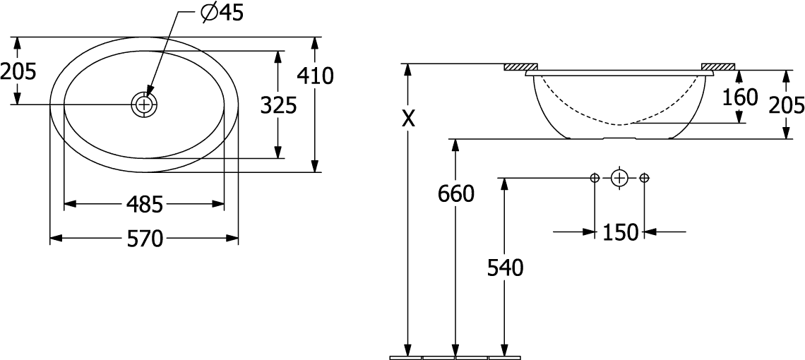 Loop & Friends Onderbouwwastafel 485x325mm 4A5401R1 Villeroy & Boch