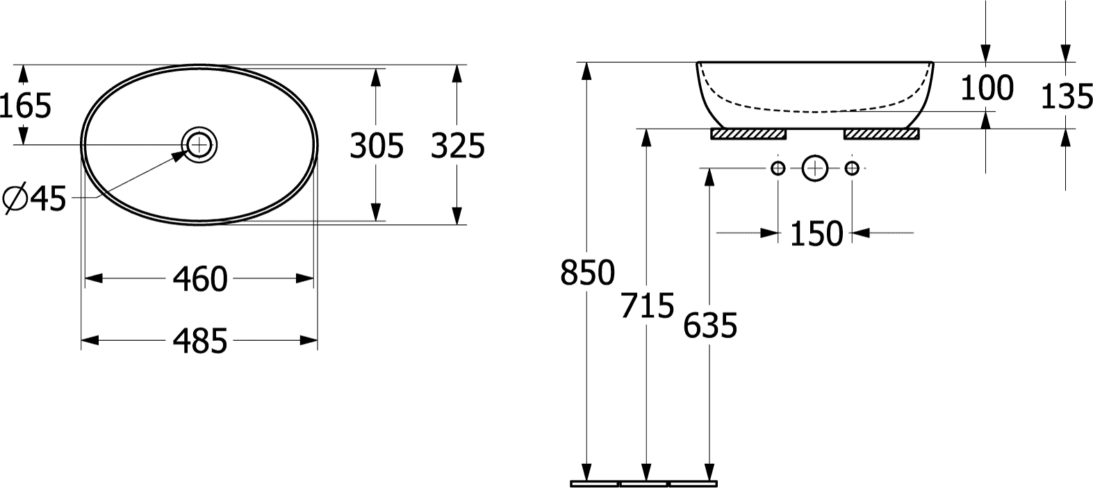 Opzetwaskom ovaal ARTIS 485x325mm kleur buitenzijde Stone white C+ binnenzijde wit zonder overloop Villeroy & Boch