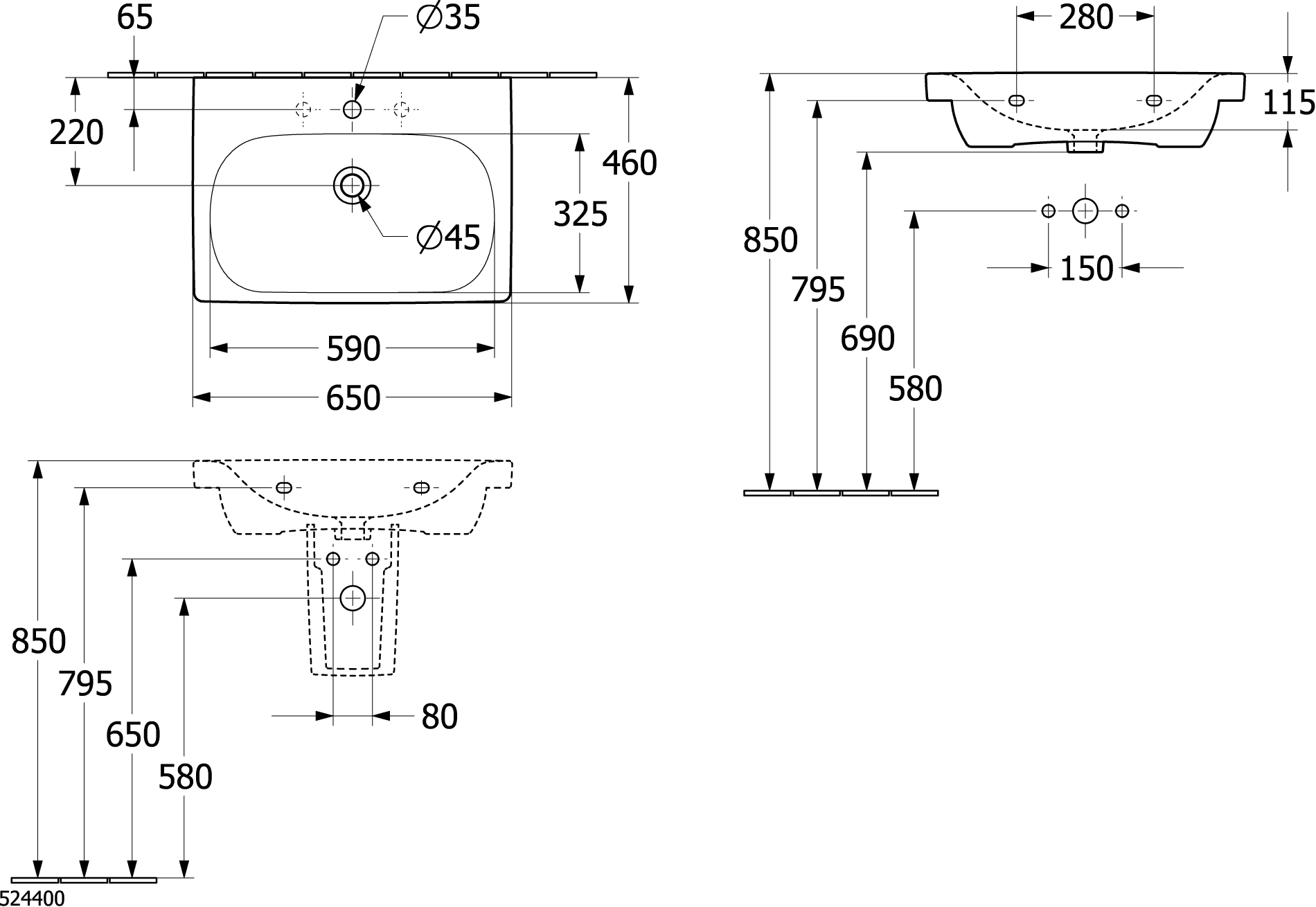 Wastafel Skyla 650x460mm White Alpine Villeroy & Boch