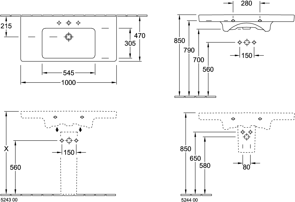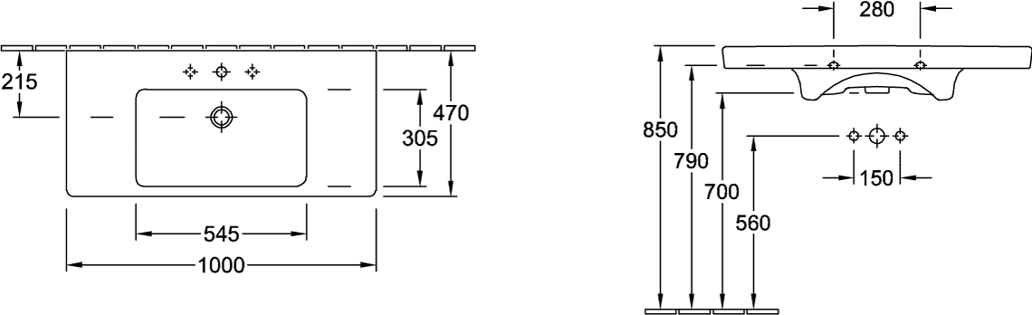 Subway 2.0 meubelwastafel 1000x470mm wit met kraangat + overloop Villeroy & Boch