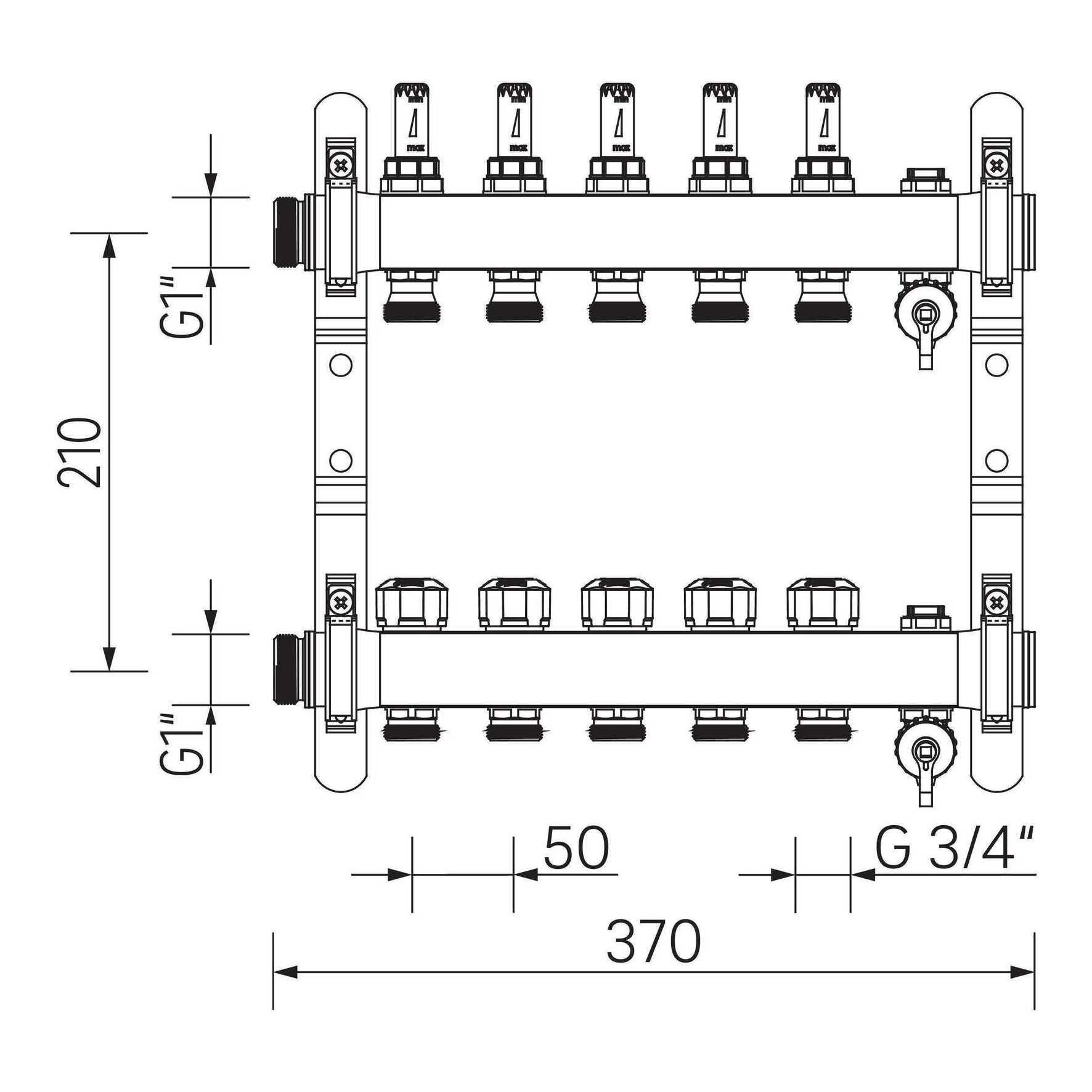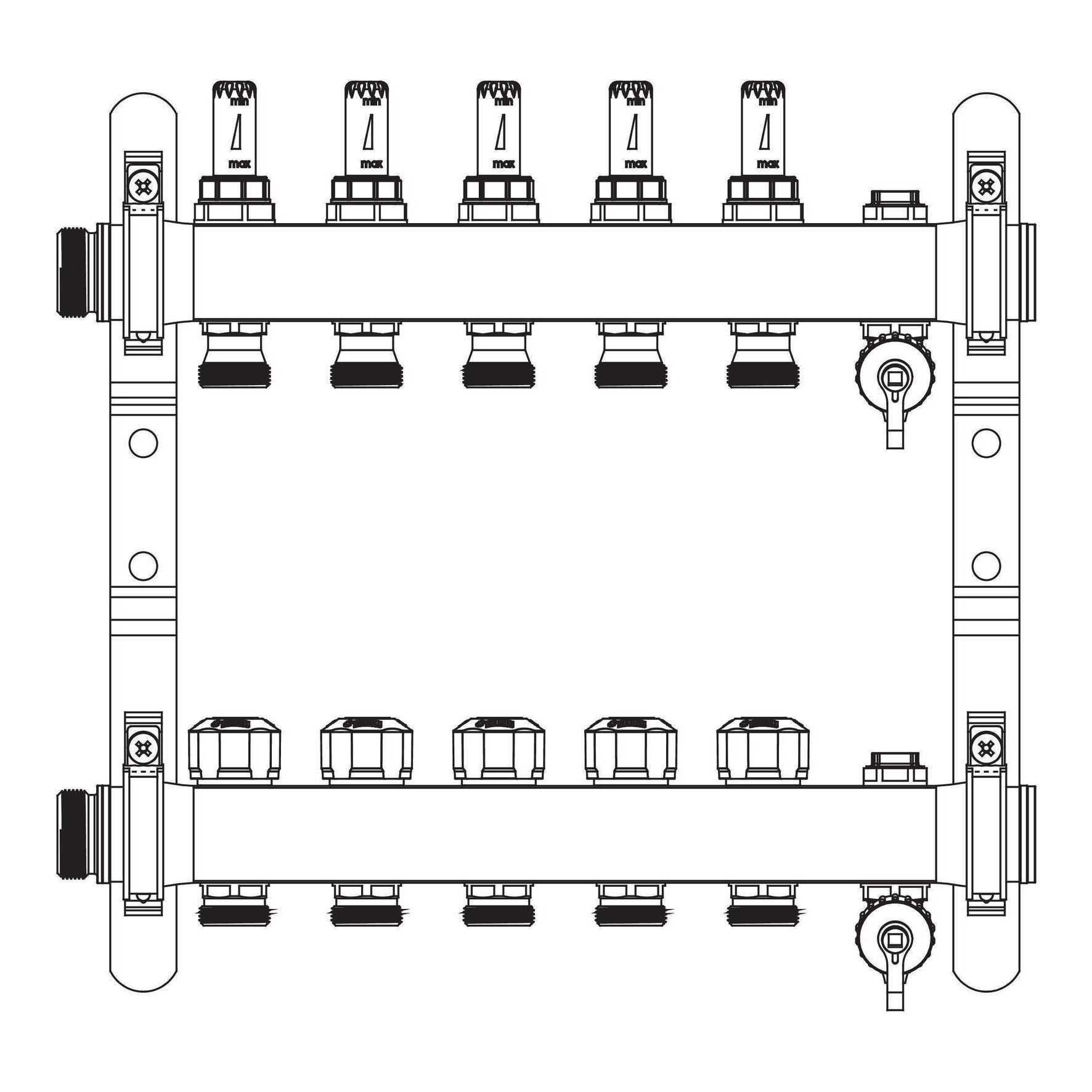 Verdeler HKV-D 5-groeps Easyflow RVS MFI min/max incl. debietmeters REHAU