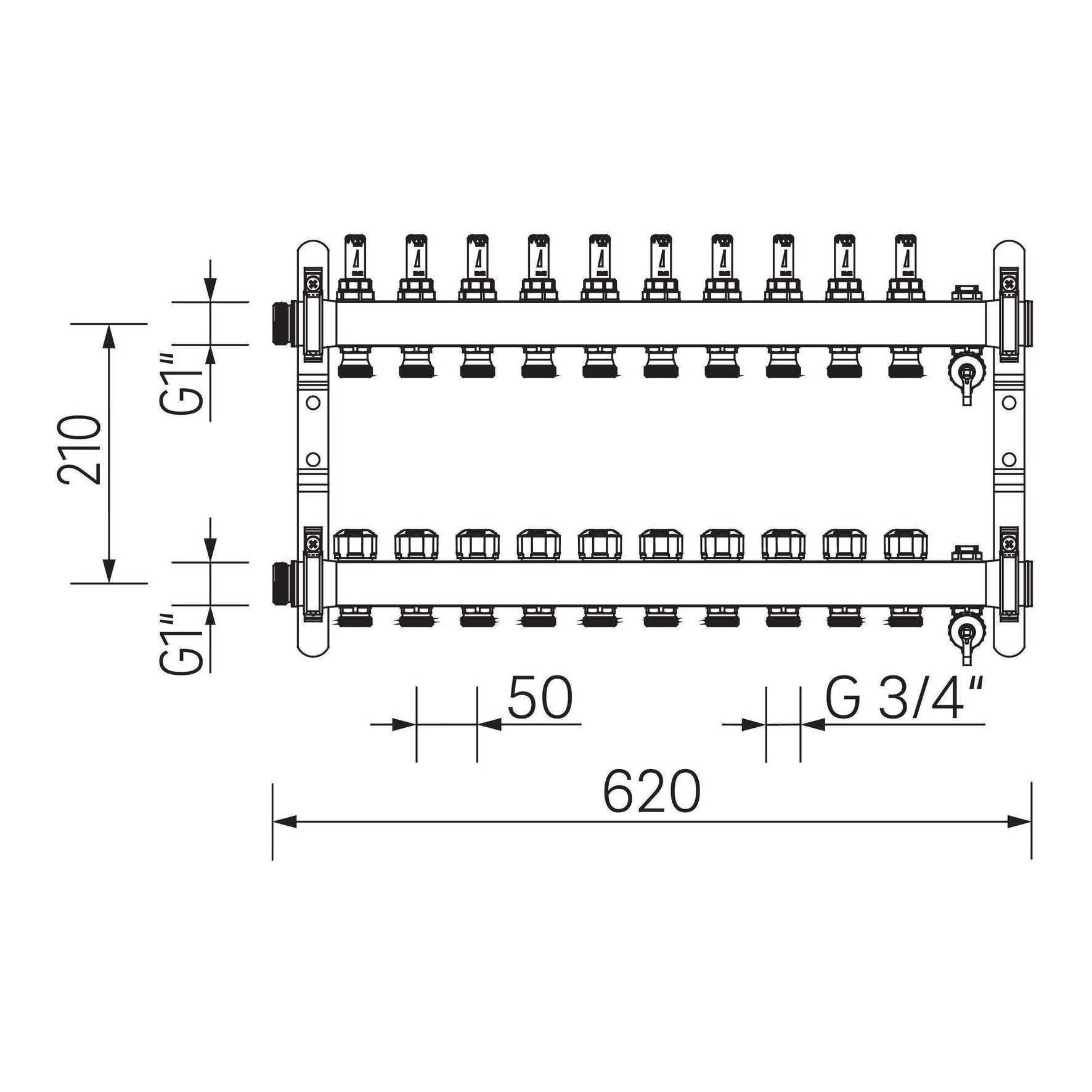 Verdeler HKV-D 10-groeps Easyflow RVS MFI min/max incl. debietmeters REHAU