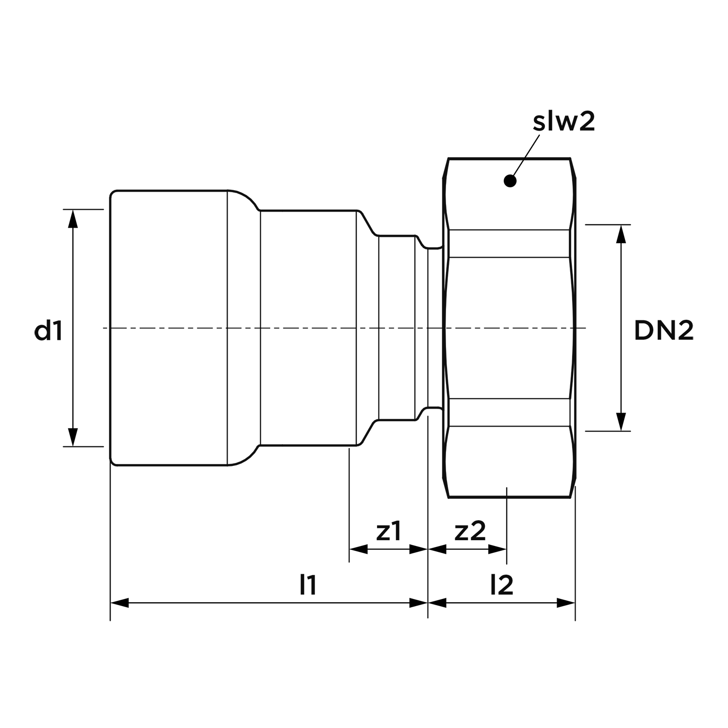 2-del. schroefkoppeling POWERPRESS dikwandig C9446 3/4"x1"wartel VSH