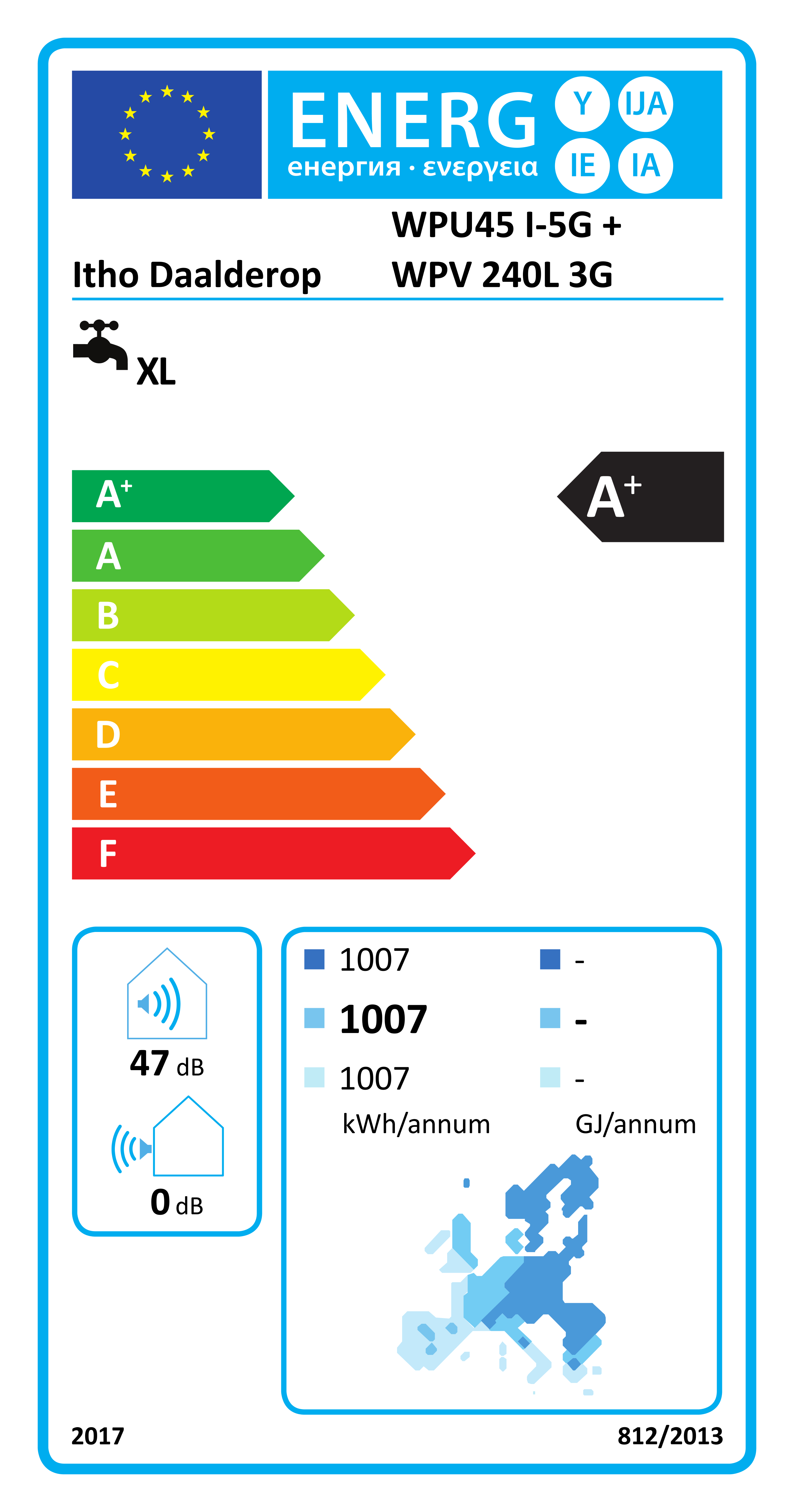 - Energie-efficiëntieklasse waterverwarming (811/2013/EU): A+